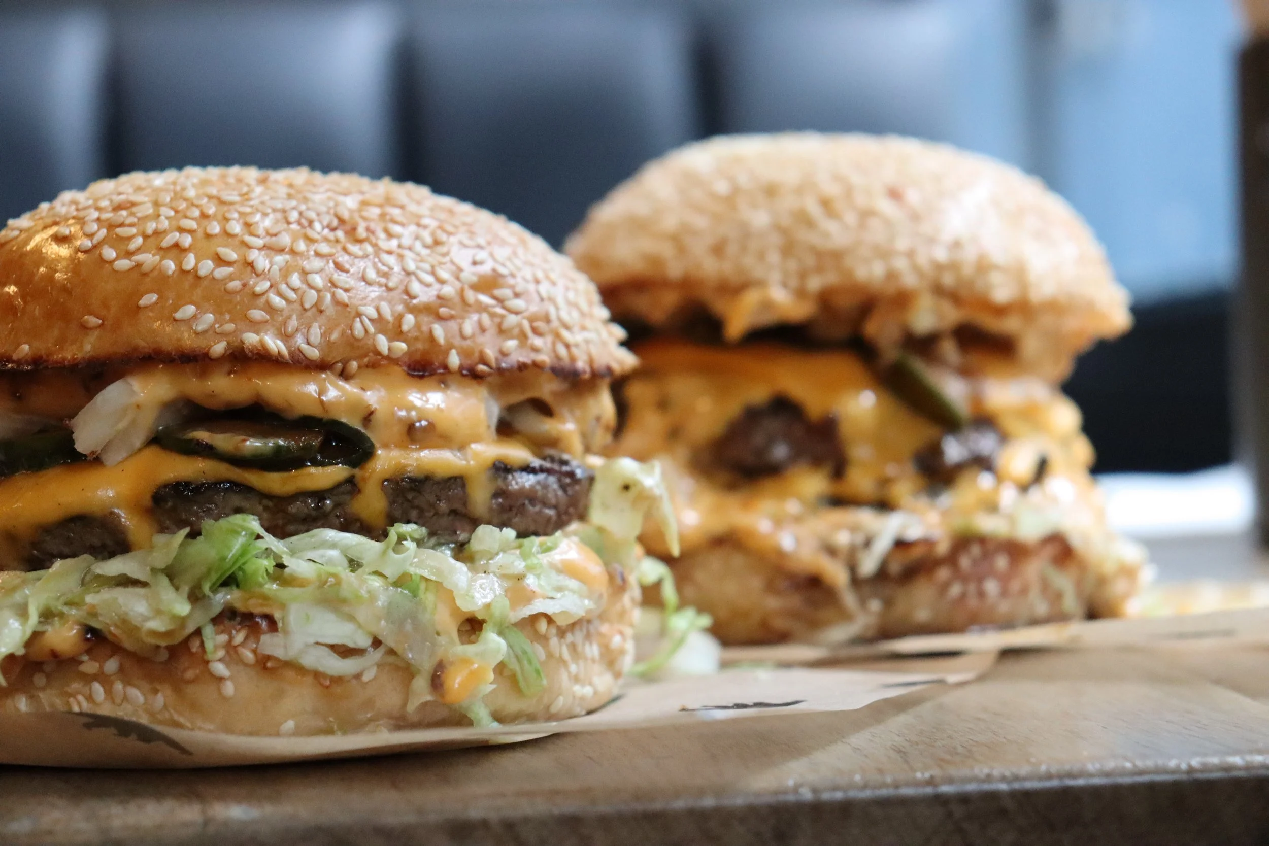 Vegan bun, vegan patty, vegan cheese, vegan garlic mayo, onion jam & crispy onions